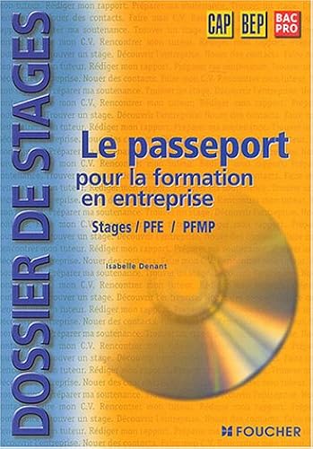 Vous avez choisi de préparer un CAP, un BEP ou un Baccalauréat professionnel. Durant votre scolarité, vous allez effectuer plusieurs périodes en entreprise. On parle de PFMP en CAP et en Baccalauréat professionnel, de PFE ou de stage en BEPPour trouver une période en entreprise maintenant, comme pour trouver un emploi plus tard, c'est tout un travail. Il faut réfléchir, prévoir, s'organiser, échanger, rédiger..Le Dossier de stages vous aidera tout au long de ce parcoursUN DOSSIER : Votre guide pour comprendre et savoir avant d'agirUN CD-ROM : Votre dossier de stage électronique pour vous lancer dans l'action. Comme tout passeport, il vous accompagnera partout : au lycée, dans votre entreprise d'accueil, chez vousValable tout au long de votre formation professionnelle